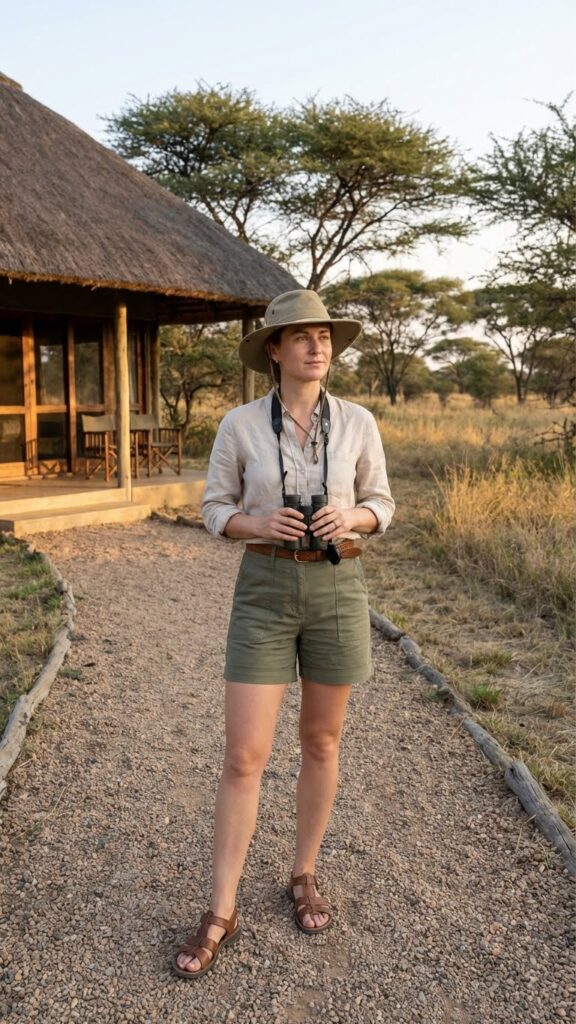 Want to look polished in a safari setting? Tailored shorts in khaki or olive paired with a lightweight blazer is unexpectedly perfect. It’s that “I’m on vacation but I still have my life together” energy.