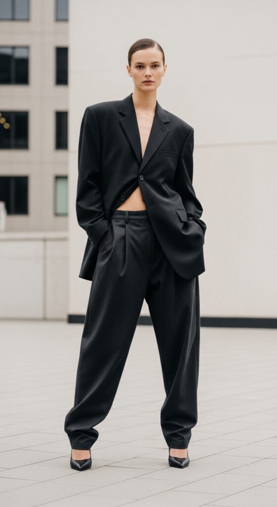 Want to look like a boss without actually being one? Same. An oversized blazer paired with baggy trousers gives you that effortless “I run this place” vibe. The trick is to keep everything in the same color family for a monochromatic moment, or go bold with contrasting shades if you’re feeling brave.