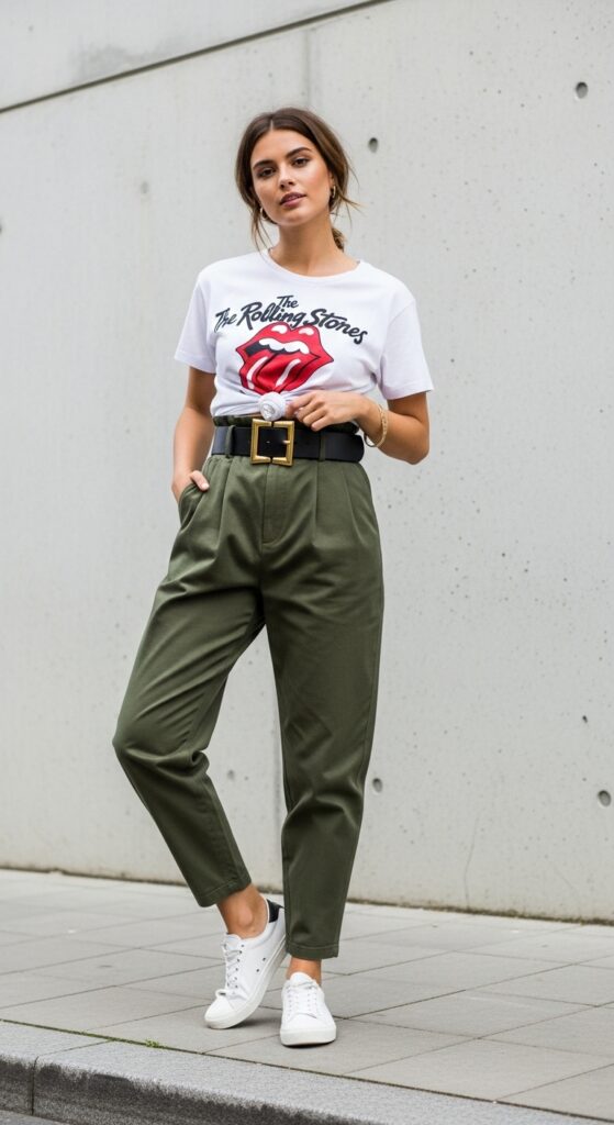 Let’s keep it real for a second. Sometimes you just want to throw on a t-shirt and call it a day, right? Well, with balloon trousers, you absolutely can—and you’ll still look incredible. A graphic tee (vintage band tee, slogan shirt, whatever speaks to your soul) tucked into balloon trousers is effortlessly cool in that “I didn’t try but I absolutely did” kind of way.