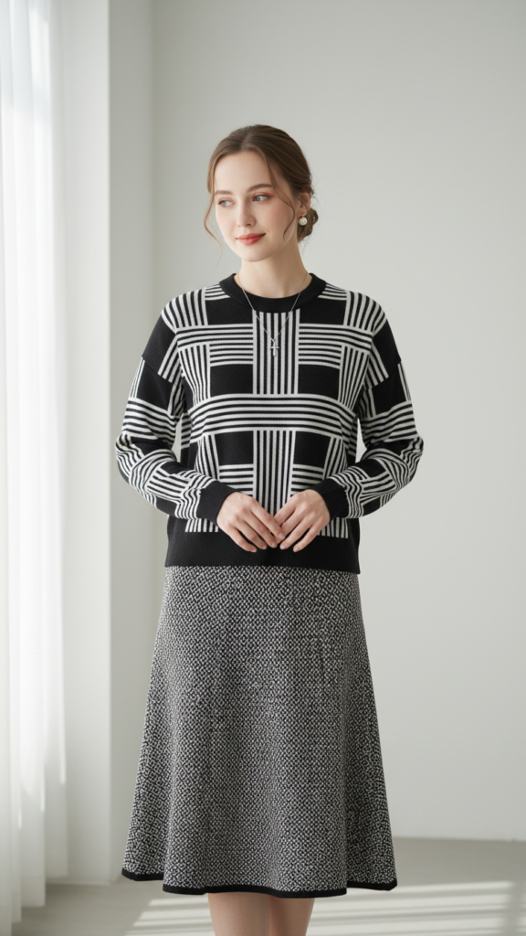 Effortless outfit coordination becomes your reality when you choose knit sets featuring contrasting black and white patterns or color-blocking designs. The stretchy fabric moves with you during standing, sitting, and greeting fellow congregants comfortably. These sets perfectly achieve the balance of comfort and style that’s essential for modern church attire.