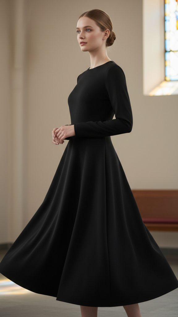 A classic black A-line dress with a modest neckline remains one of the most versatile and timeless choices for church attire across all denominations. You’ll find this silhouette flatters every body type while maintaining appropriate coverage for worship settings.