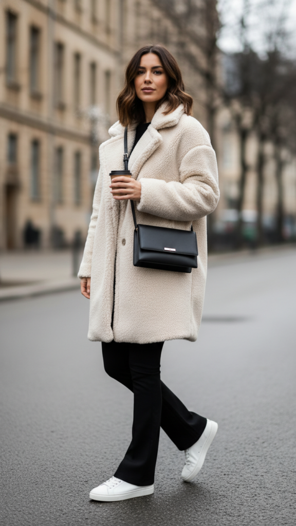 Teddy Coat With Minimalist Sneakers