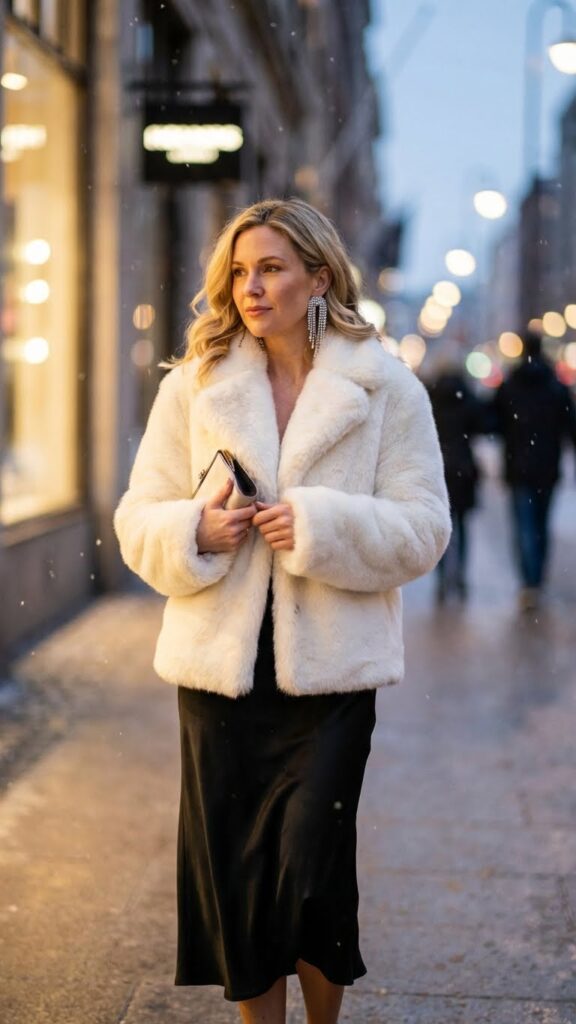 Nothing alters a simple black skirt into showstopping evening wear quite like a luxurious faux fur coat. This combination gives you the freedom to make a bold statement while staying warm during winter nights out.