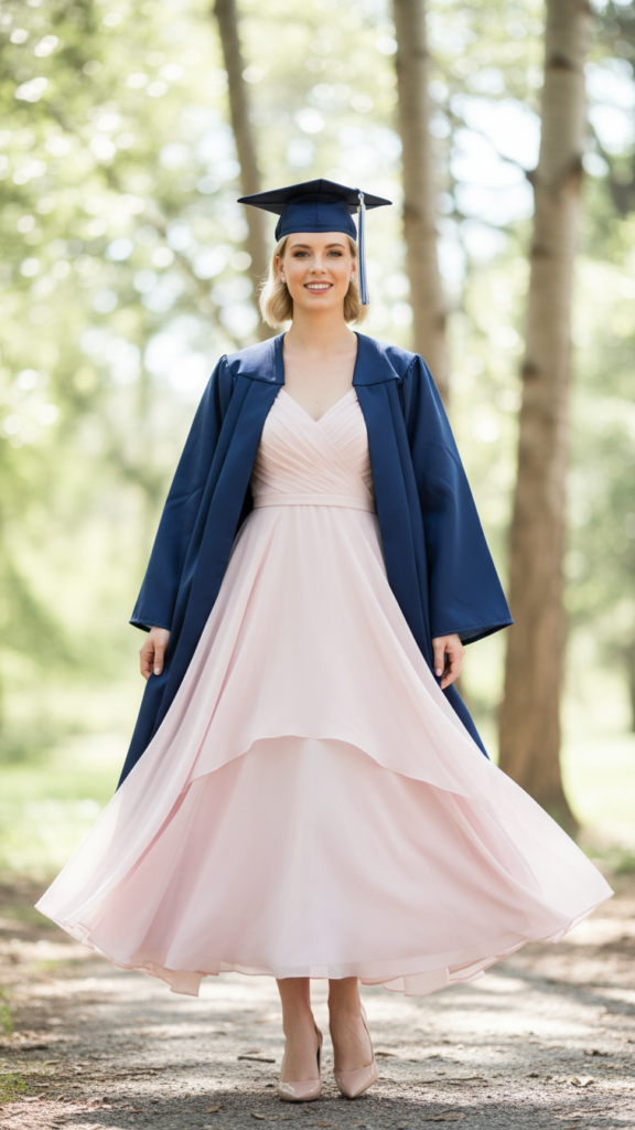 This soft and feminine approach works perfectly for spring or summer graduations, giving you confidence as you walk across the stage to collect your well-earned diploma.
