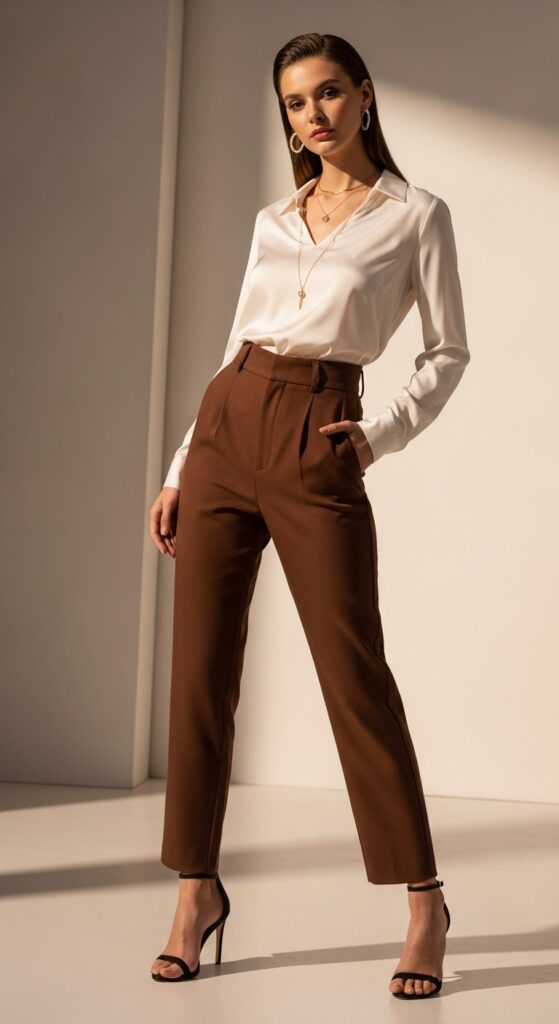 12 Elegant Brown Trousers Outfit Ideas That Feel Luxe