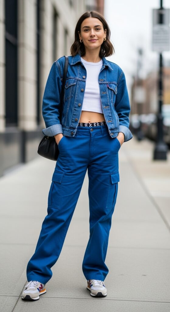 Who said cargo trousers can’t be dressed up? Throw on an oversized blazer and watch the magic happen. This combo is giving business casual with a rebellious twist, and I’m obsessed.