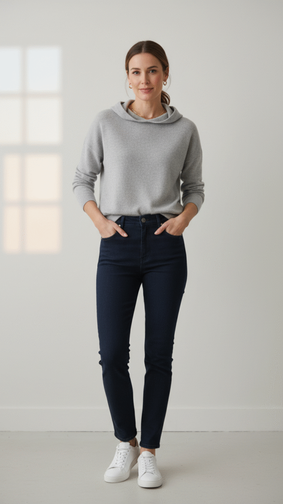 Cashmere Hoodie and Tailored Jeans With Sleek Sneakers