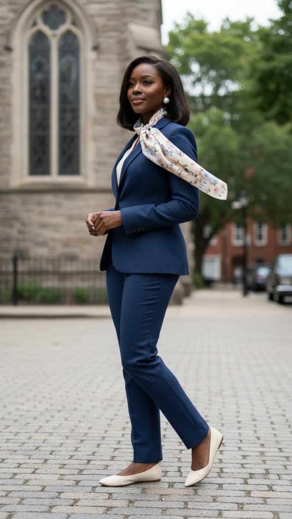 Sophistication meets modern worship style when you choose a well-tailored pantsuit that commands respect while expressing your personal fashion sense. A structured silhouette in navy, charcoal, or deep burgundy creates a refined foundation that’s both professional and worship-appropriate.