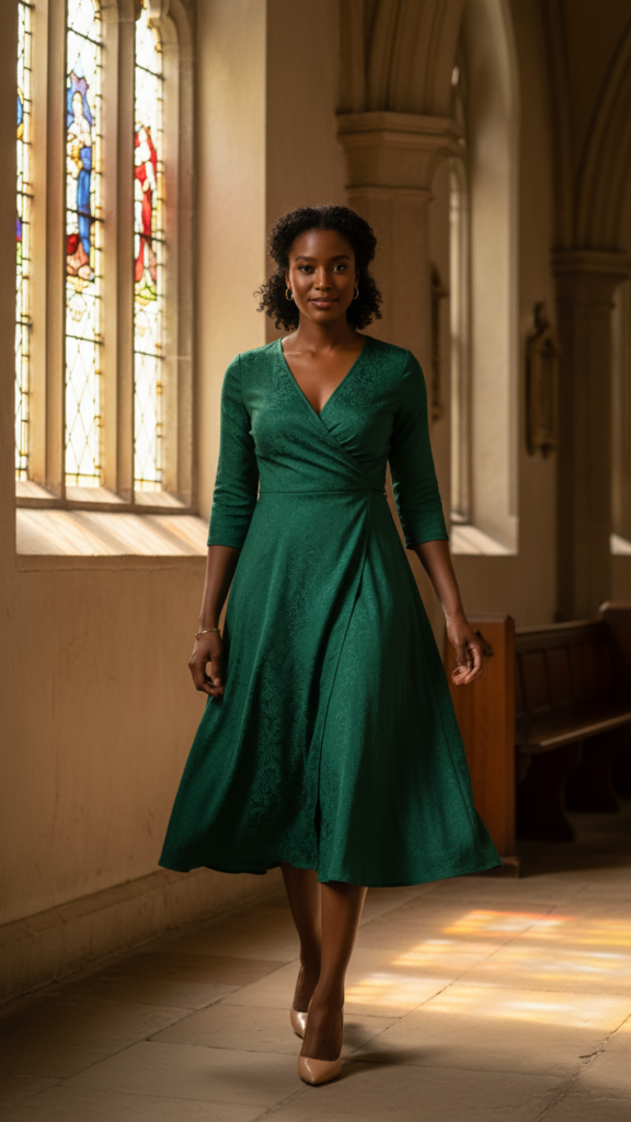 Wrap dresses offer the perfect combination of feminine elegance and comfortable movement, making them an ideal choice for Sunday worship services. Choose deep emerald, sapphire blue, or rich burgundy tones that complement your skin beautifully while maintaining appropriate coverage.