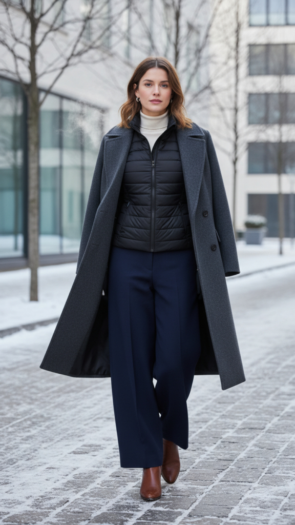 Heated Vest Styled Under Elegant Outerwear