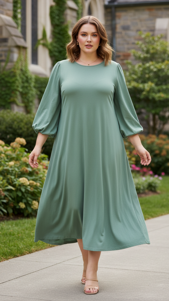 When you’re searching for the perfect church outfit that combines elegance with comfort, the classic A-line midi dress with statement sleeves delivers timeless sophistication.