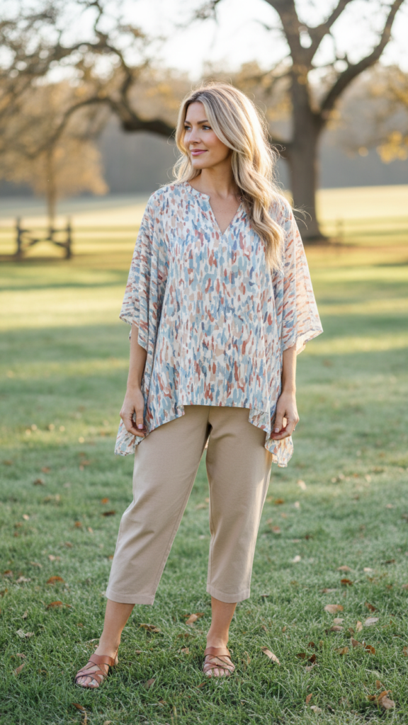 Cropped Pants With Flowy Tunic Top