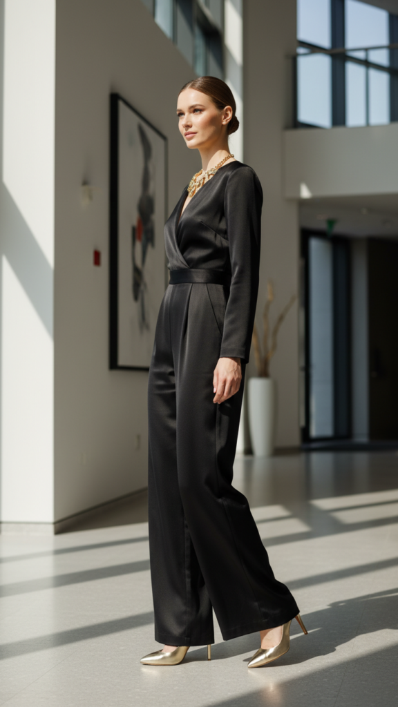 Complete the ensemble with metallic heels in gold or silver to add glamour without overwhelming the outfit. Achieving a polished appearance requires attention to fit and proportion, ensuring your jumpsuit is tailored to flatter your silhouette. This combination allows you to move freely during ceremonies while maintaining an polished appearance that photographs beautifully and shifts seamlessly from day to evening celebrations.