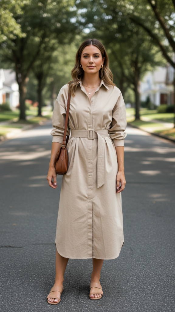 Choose a midi-length dress in crisp cotton or breathable linen for optimal movement and sophistication. The belt detail cinches your waist, creating definition without restricting your breathing during long ceremonies. Pair with low heels or polished flats, and you’ll achieve that perfect balance between professional polish and effortless style that graduation day demands.