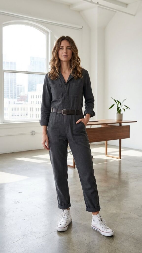 Jumpsuits are basically outfit cheat codes. One piece, zero effort, maximum style. Pair a tailored jumpsuit with Converse, and you’ve cracked the dress code.