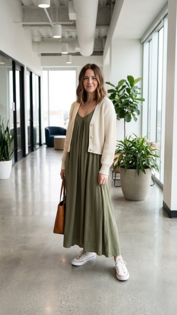 A flowy maxi dress with Converse is giving “I might have plans after work” energy, and I’m obsessed. This combo feels effortlessly polished while being incredibly easy to throw on.