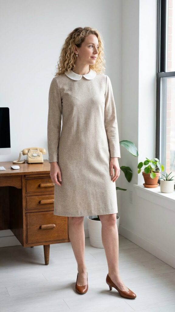 Style with kitten heels or ballet flats and minimal jewelry—maybe just some pearl studs. The collar is the statement piece here, so you don’t need to add much else. This look is perfect for those days when you want to feel extra feminine and polished without any complicated styling.