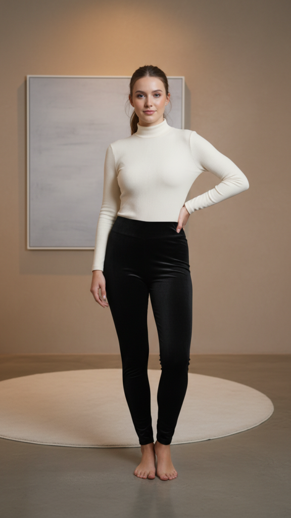 Choose bodysuits in neutral tones like cream, black, or camel to maximize versatility. The turtleneck provides extra warmth around your neck and chest without adding bulk. Meanwhile, velvet leggings offer a plush feel against your skin while looking polished enough for video calls.