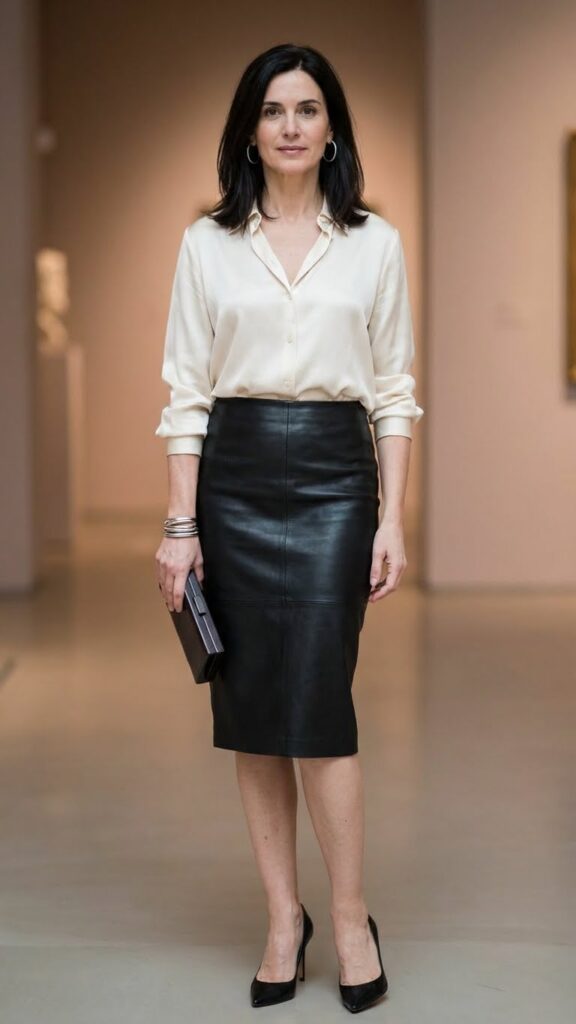 Choose a high-waisted leather pencil skirt in black or burgundy for a sleek silhouette. Tuck in a flowing silk blouse with subtle sheen to soften the leather’s edge. You’ll love how these textures play off each other beautifully.