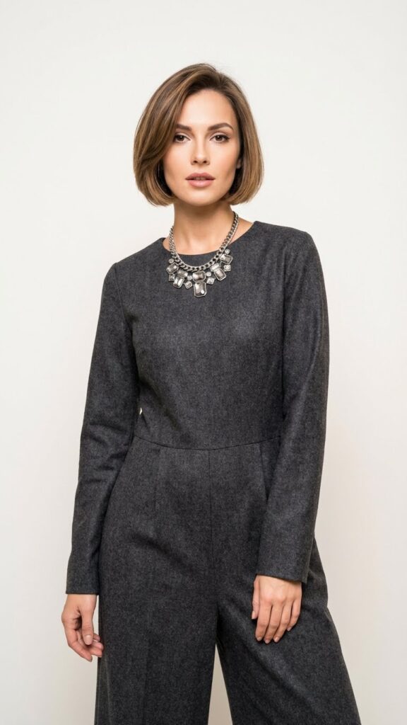 Select jumpsuits in rich winter tones like burgundy, emerald, or classic black. Add pointed-toe heels to elongate your silhouette, and throw on a customized blazer when temperatures drop. You’ll feel confident, polished, and completely unrestricted all evening.