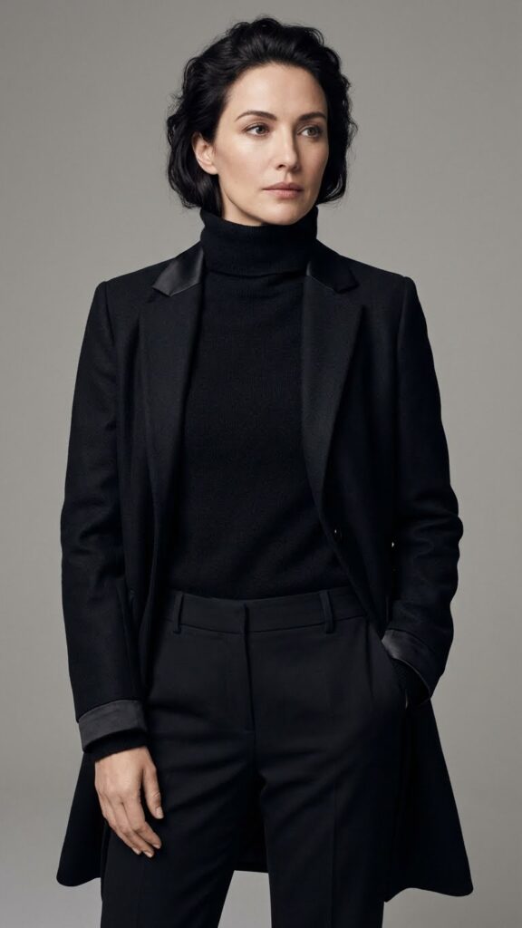 Nothing commands attention quite like a head-to-toe black outfit on a winter date night. This minimalist chic approach creates an effortlessly sophisticated silhouette that works for any venue. You’ll love how versatile layering becomes when every piece shares the same shade.