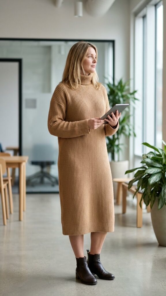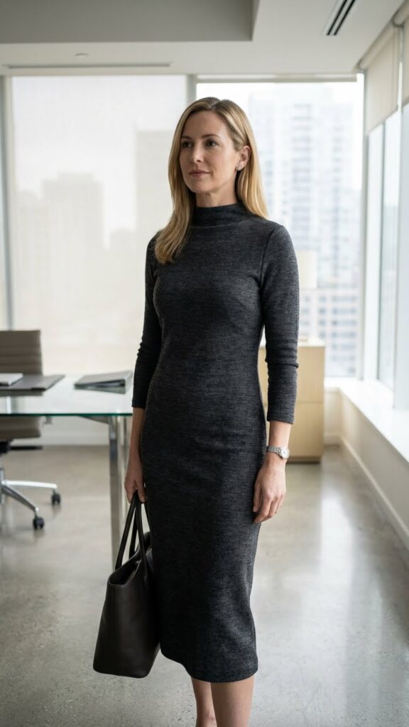 Explore cozy layering options by adding structured blazers, chunky statement necklaces, or knee-high boots. You’ll create polished ensembles that adapt, evolve, or transform to changing office temperatures while maintaining your professional edge effortlessly.