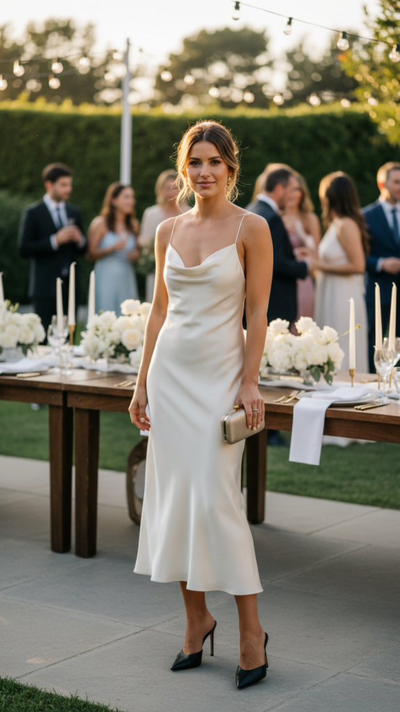 If you’re looking for an engagement party outfit that basically styles itself, a midi dress is your new best friend. There’s something about that length that just screams “I have my life together” even when you absolutely do not.