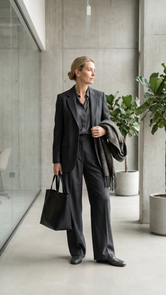 The trick is mixing textures within your chosen color palette to add dimension. A silk shirt with wool trousers, for example, or a matte blazer with slightly shiny pants. This look basically says “I have excellent taste” without trying too hard.