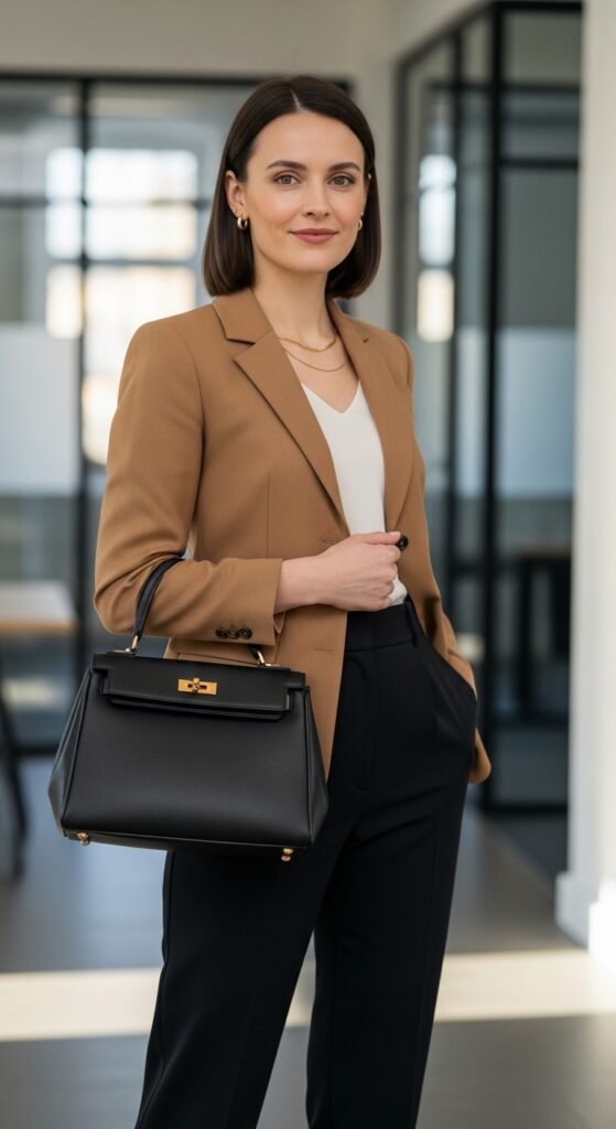Go for a fitted blazer that nips in at the waist. Pair it with high-waisted formal trousers and suddenly you’ve got proportions that photographs beautifully. The key here is fit. Seriously, a well-tailored blazer is worth every penny. I usually keep the color palette neutral (think black, navy, or camel) because it’s easier to mix and match, but if you’re feeling bold, a burgundy or forest green blazer can be absolutely stunning.