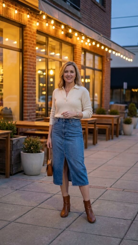 Denim skirts are having a moment again, and honestly, I’m here for it. A midi length denim skirt paired with a fitted top or tucked in blouse feels fresh and modern.
