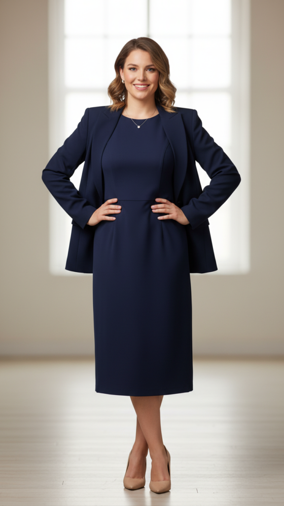 Classic Midi Dress With Structured Blazer