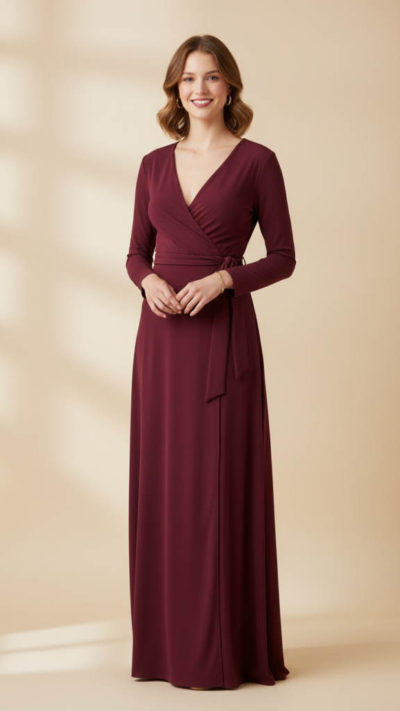 The wrap silhouette naturally flatters various body types by creating an adjustable fit at the waist. Unlike coordinated prints that can appear busy in photos, solid colors maintain focus on your achievement. For a truly refined appearance, select fabrics with subtle textures or quality materials that elevate the overall sophistication of your ensemble. Pair with nude pumps and delicate jewelry to complete this polished look that shifts smoothly from ceremony to celebration.