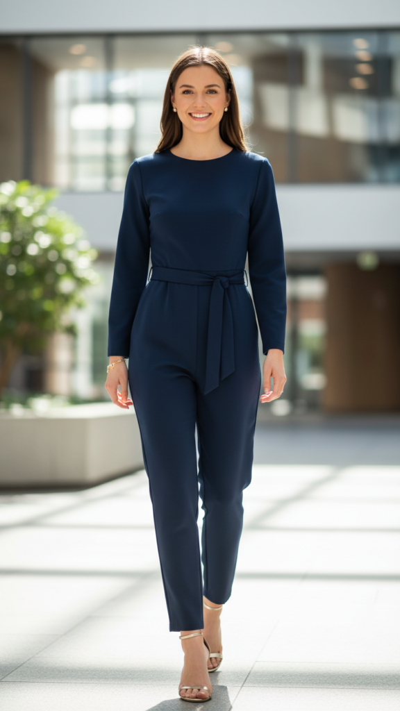 Choose styles with structured shoulders or cinched waists that flatter your silhouette while maintaining appropriate coverage. Complete your look with minimal heeled sandals that’ll keep you comfortable during long ceremonies. These fashionable graduation jumpsuits offer a modern twist that stands out from traditional dress options while maintaining ceremony-appropriate elegance. Layer on a delicate bracelet stack and simple stud earrings to add refined sparkle without overwhelming your outfit’s clean lines.