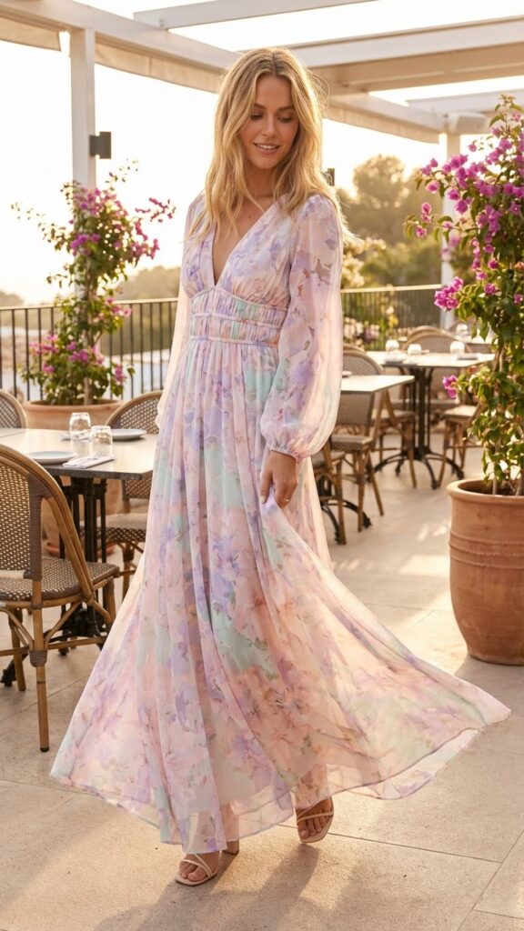 Is there anything more “I just graduated and I’m thriving” than floating into a restaurant in a gorgeous maxi dress? This look works especially well for outdoor dinners, rooftop venues, or anywhere with good lighting and a slight breeze for maximum dramatic effect.