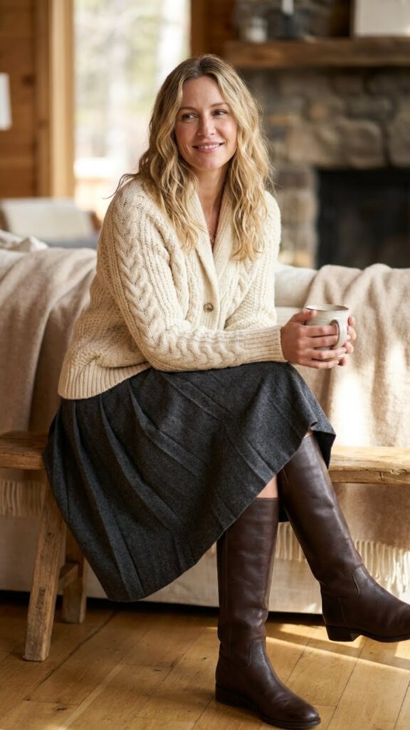Cozy Cardigan and Knee-High Boots