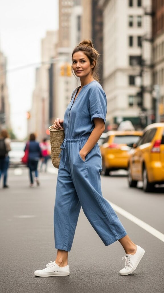 A breathable cotton jumpsuit is the ultimate one-and-done outfit. You’re literally wearing one piece, but it looks like you spent time coordinating an entire look. That’s called efficiency, baby.