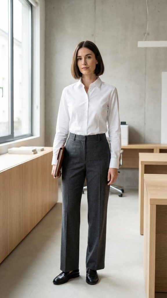 Is there anything more iconic than a perfectly pressed white button-down? Didn’t think so. Pair it with wide-leg trousers in charcoal or navy, and you’ve got yourself an outfit that screams “I know what I’m doing” even on days when you definitely don’t.