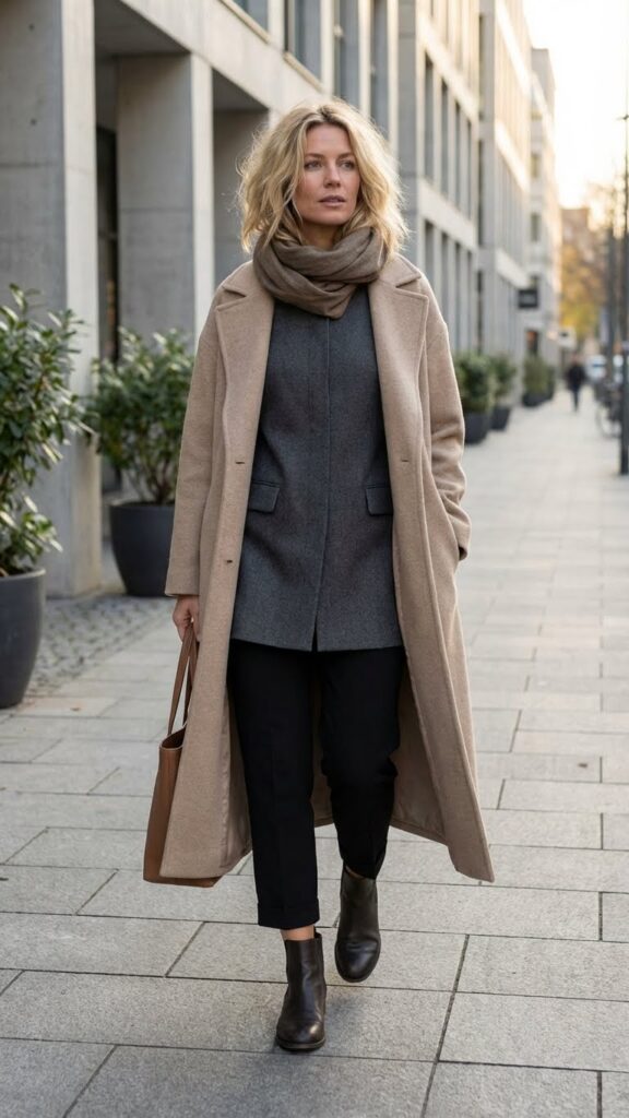 Here’s the secret weapon: a longline coat instantly makes any outfit look more expensive and intentional. Throw it over literally anything—jeans and a tee, a simple dress, trousers and a blouse—and suddenly you look like you walked out of a Tokyo street style photo.