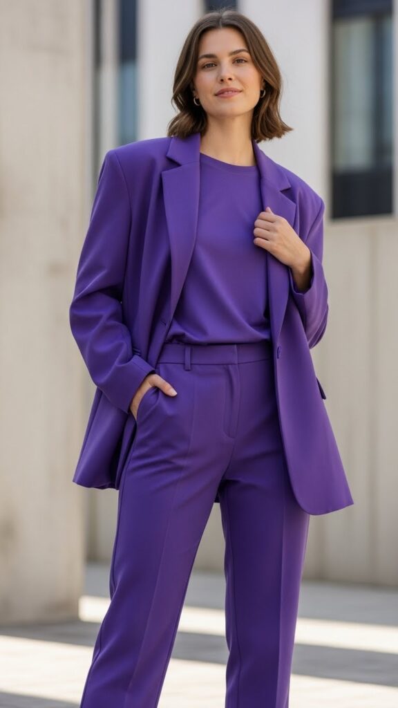 Whether you go for a soft lilac, warm terracotta, or deep emerald, the monochromatic effect elongates your silhouette and looks incredibly chic. Just make sure the fit is slightly relaxed rather than skin tight. We’re going for cool and comfortable, not restrictive.