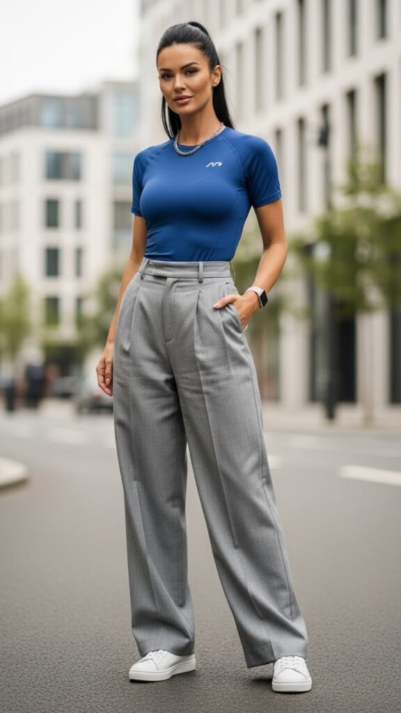 Mixing sporty and polished pieces is such a Korean fashion move, and it creates the most interesting outfits. Think a fitted athletic top or a clean zip up jacket paired with beautifully tailored wide leg trousers.
