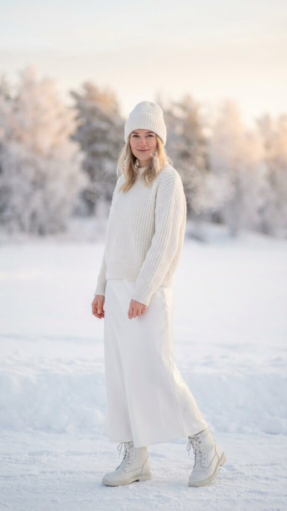 14 Long White Skirt Outfit Ideas for a Dreamy Winter Look