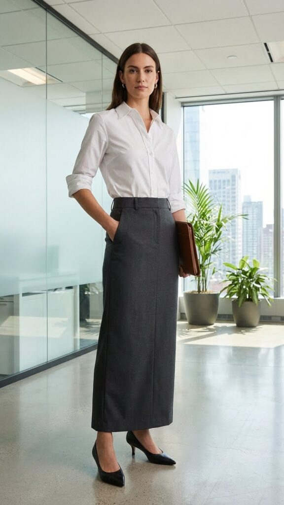 15 Maxi Skirt Office Outfit Ideas That Are Office-Approved