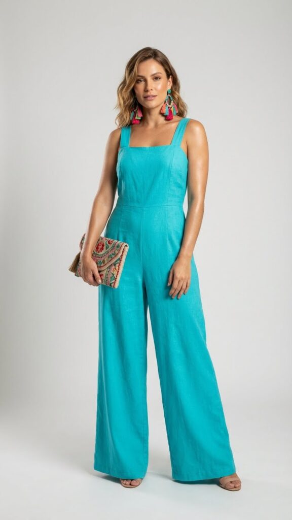 For those who want a modern twist on Mexican party outfit ideas, a bright jumpsuit in a fiesta worthy color is everything. Think wide leg styles in hot pink, sunny yellow, or vivid turquoise.