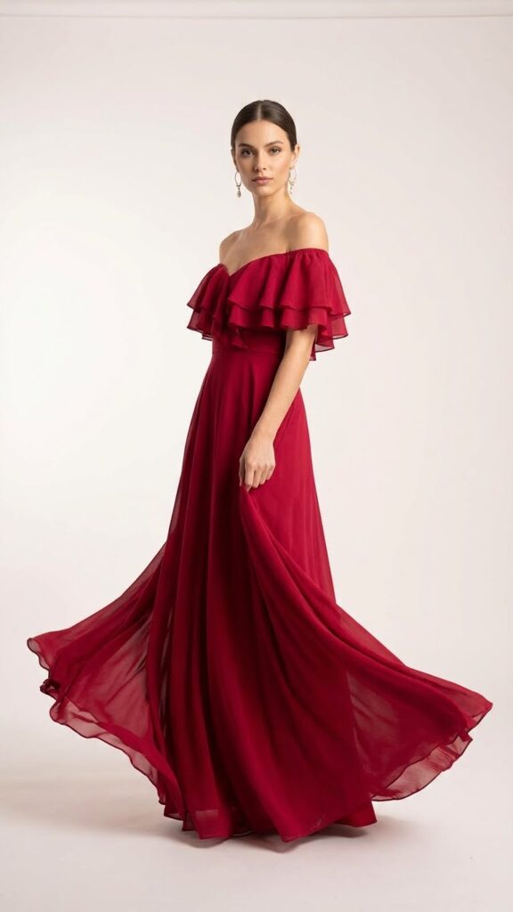 Go for a dress in classic Mexican party colors like red, fuchsia, marigold yellow, or emerald green. Ruffles are your friend here, trust me. They add movement and drama without making you feel overdressed. A tiered ruffle hem? Chef’s kiss.