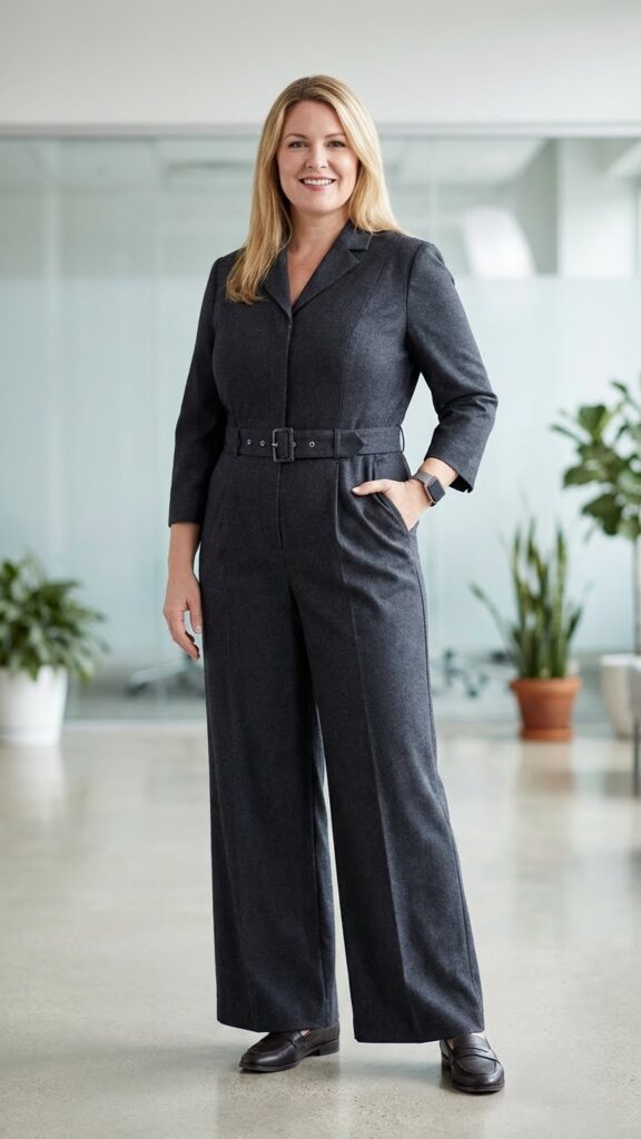 One of the most sophisticated and versatile combinations for midsize professionals is the power blazer paired with wide-leg trousers. This timeless pairing creates a structured fit that commands respect while giving you complete freedom of movement throughout your workday.