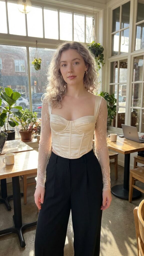 Here’s a styling secret: sheer sleeves or lace details on your corset take it from cute to absolutely stunning. Add some dainty layered necklaces that draw the eye to your neckline, and you’ve nailed the romantic party aesthetic that’s all over Pinterest right now.