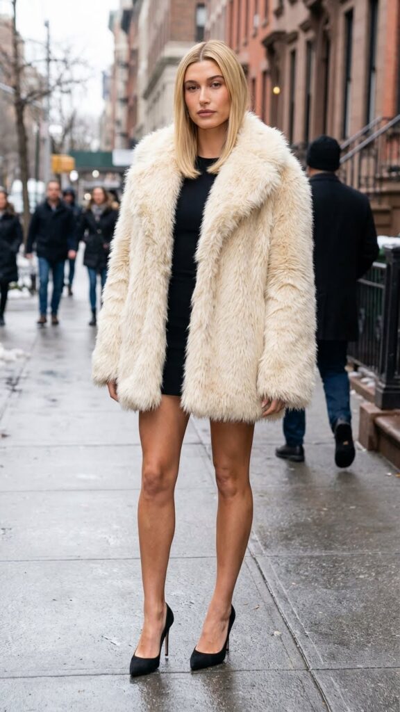 The beauty of this approach is that you’re basically wearing two outfits. The dramatic entrance look and the understated chic underneath. It works for winter parties especially because you get to stay warm while still serving major aesthetic energy.