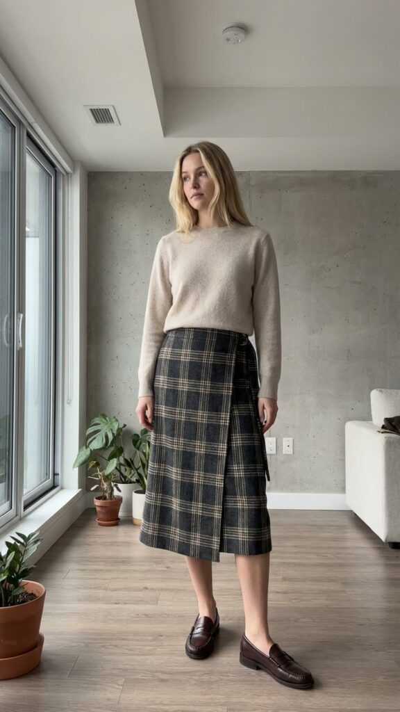 Have you ever wondered how gracefully fashionable a plaid wrap skirt can look when paired with luxurious cashmere? This combination offers effortless sophistication while giving you complete freedom of movement throughout your winter days.