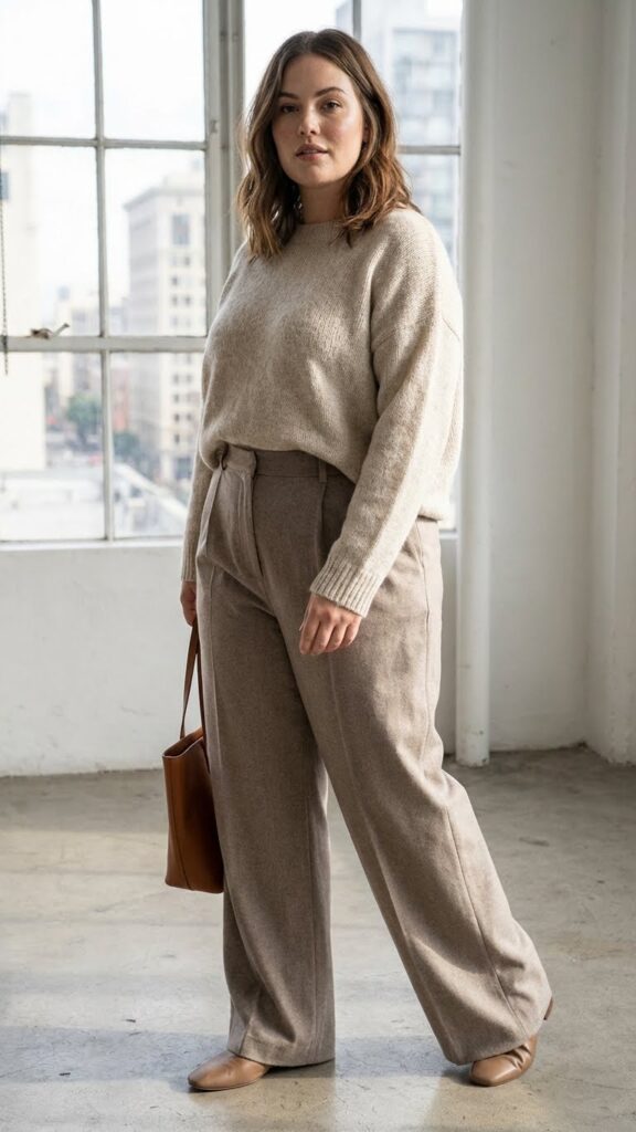 Wide leg trousers are having their main character moment and I’m here for it. They balance curves beautifully and feel shockingly comfortable. Add a soft knit top and you’ve got cozy office energy without looking lazy.