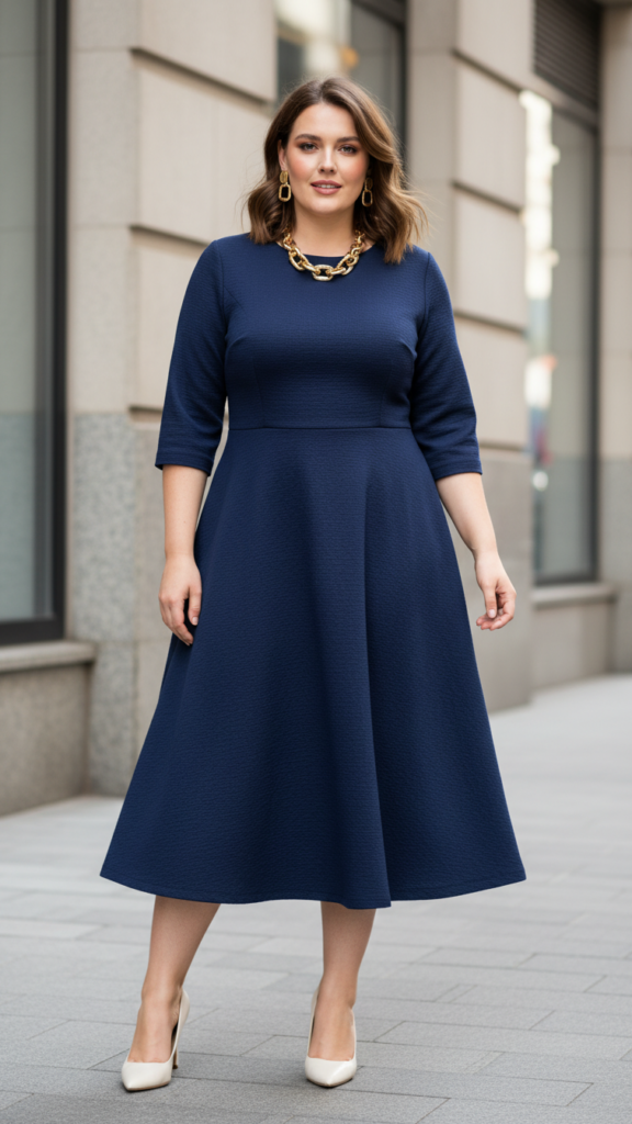 Classic A-Line Midi Dress With Statement Accessories